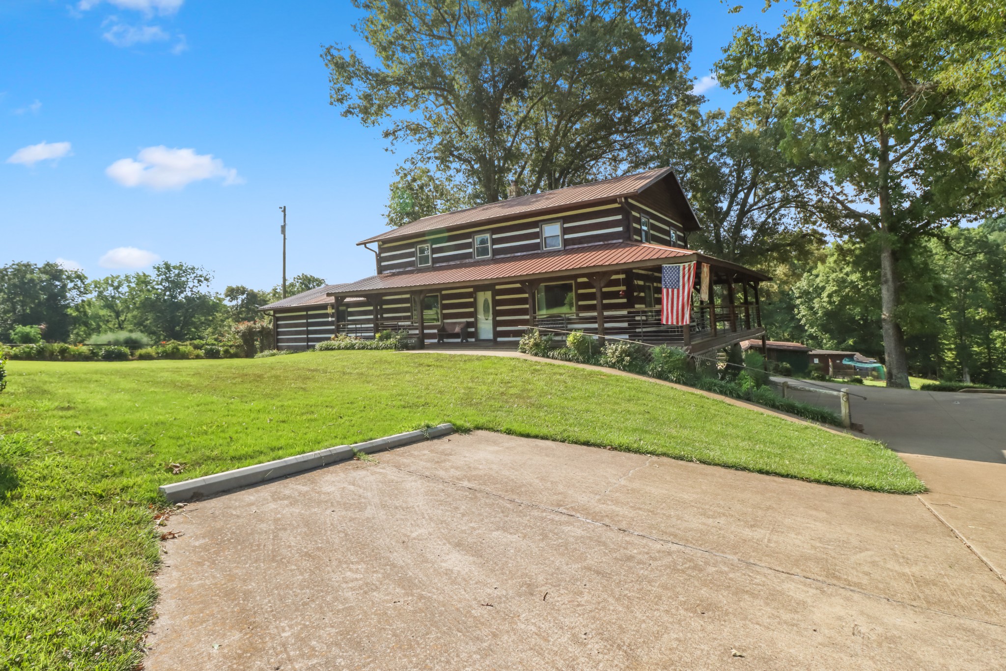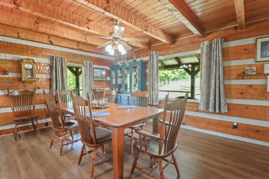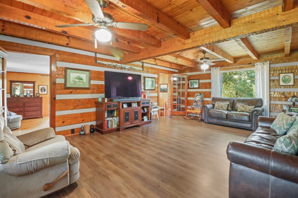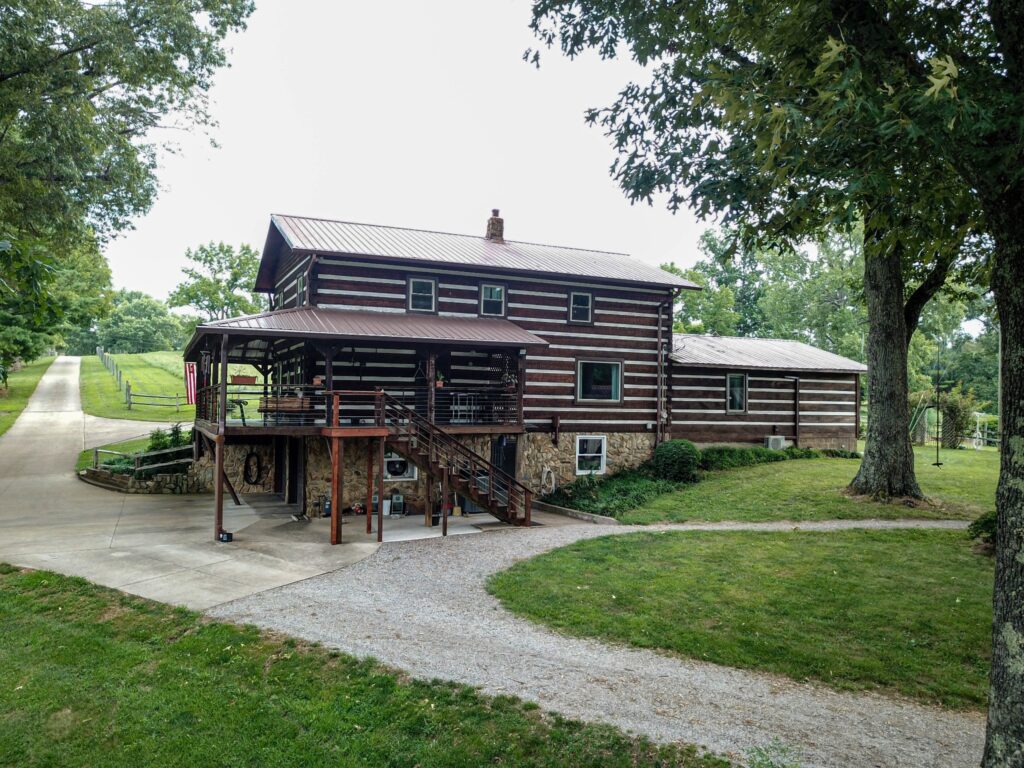 LIVE on-site auction, Saturday, Sept 14th @ 10AM with Auctioneer, Ed Cope. Very PRIVATE log cabin sits in the woods surrounding itself on 27.8 (+/-) beautiful acres with a fully stocked pond. Property also has a chestnut log smokehouse, 45×30 shop, corn crib storage building, chicken house, 20×80 six-bay equipment shed, 50×60 barn with cattle working facilities, and lots of misc. equipment (Quincy QT-5 80 gallon/5 hp compressor, HI-CO House 7 foot three-point hitch rotary mower, Texas Pride 7’ x 12’ dump trailer 14,000 GVWR, Land Pride RCF3010 10’ trailer rotary cutter, several John Deer Tractors and Mowers, Bushhog 8’ offset trailer rotary mower, additional items attached for printing, etc.). See the full list of personal property for auction here by clicking here.