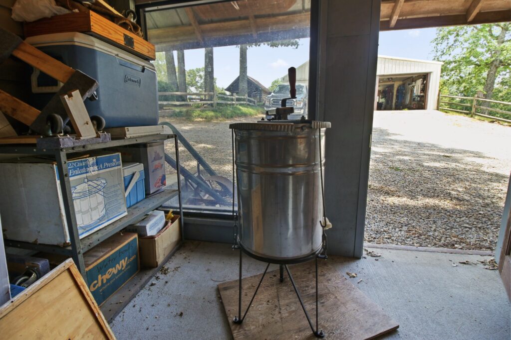Three-frame honey extractor.