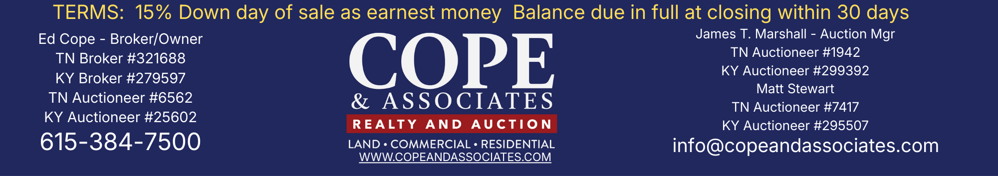 LIVE BIDDERS REGISTER ONSITE DAY OF SALE.